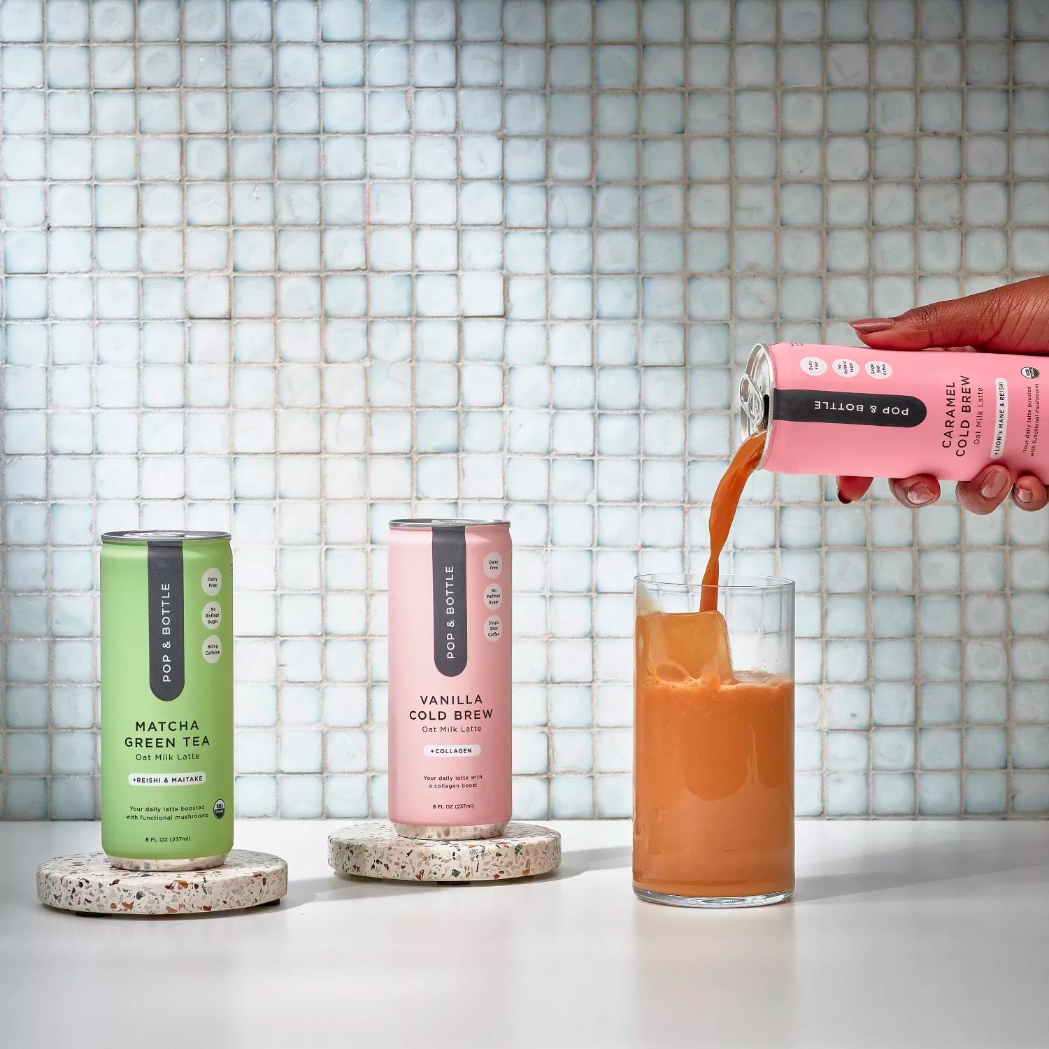 Pop & Bottle Caramel Cold Brew Oat Milk Latte with functional boost from Reishi and Lion’s Mane – 8 fl oz